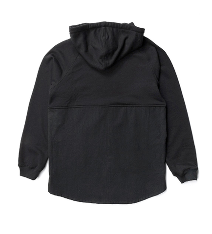 Details: Premium heathered terry hoodie with fabric blocked bottom half, zipper closure, slanted front pockets, finished with flag label at side seam